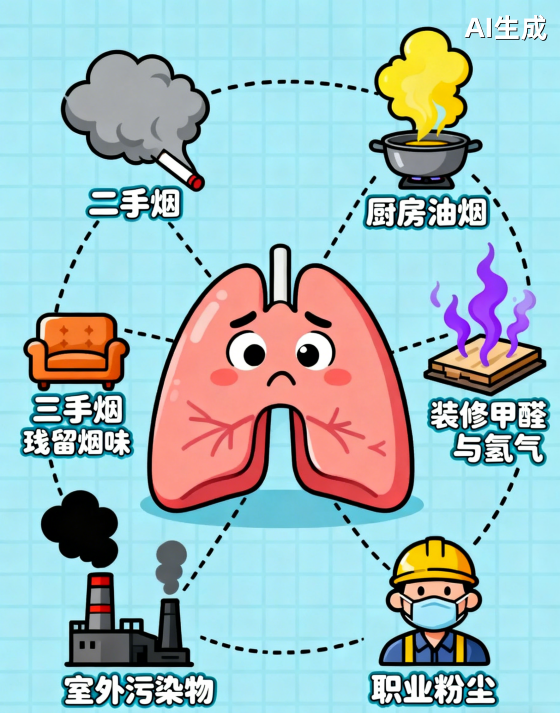 但不少人存在认知误区,觉得 “不吸烟、无家族病史就和肺癌无关”。实际上,二手烟、三手烟危害堪比主动吸烟,厨房油烟、装修残留甲醛与氡气、室外污染物、职业粉尘等都是潜伏杀手,甚至部分患者无明确高危因素。别让认知偏差阻碍健康,非高危人群也建议在医生指导下制定个性化筛查方案。